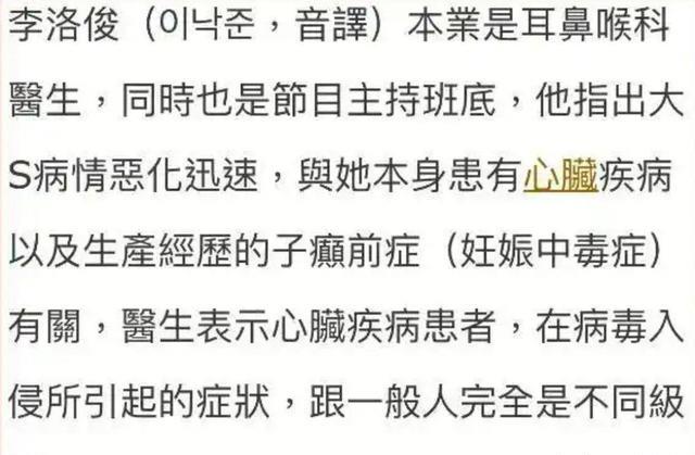 也就是说,大S的身体和普通人相比会衰弱得多,也更容易感染疾病。