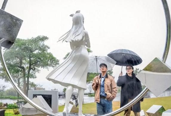 没想到光头记住了这句话,还为此弄了一个环形设计,来将这个少女雕像围住。
