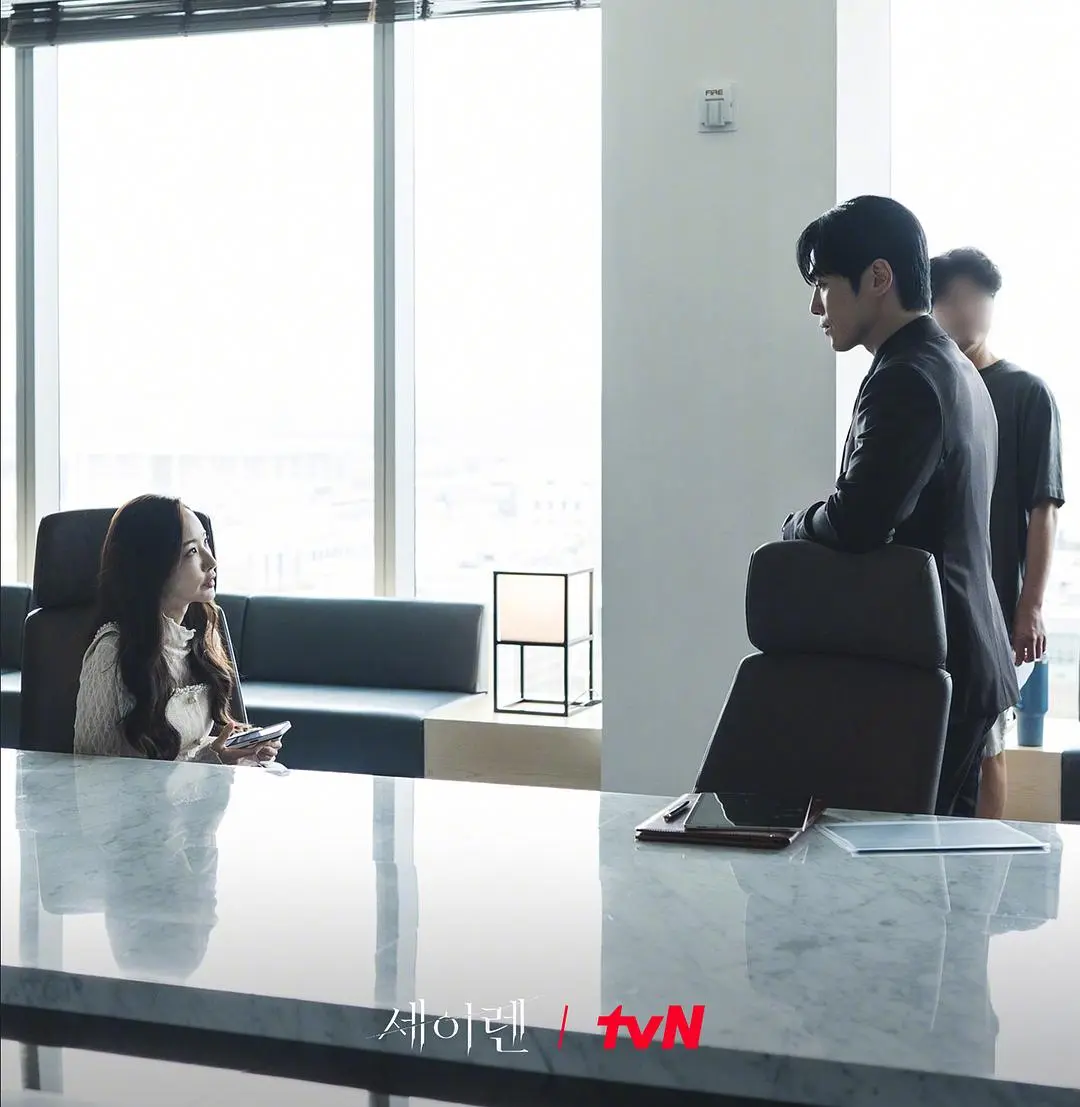 而魏嘏隽演的车宇硕,则是典型的“金哲珪式男主”,在职业使命和私人情感之间反复挣扎。他的眼神从最初对韩雪雅的怀疑与警惕,到调查中被她吸引,再到最后的沦陷,每一个阶段都有细微的变化。这种“猫鼠游戏”般的爱恋,让观众隔着屏幕都能感受到那份危险又窒息的暧昧。